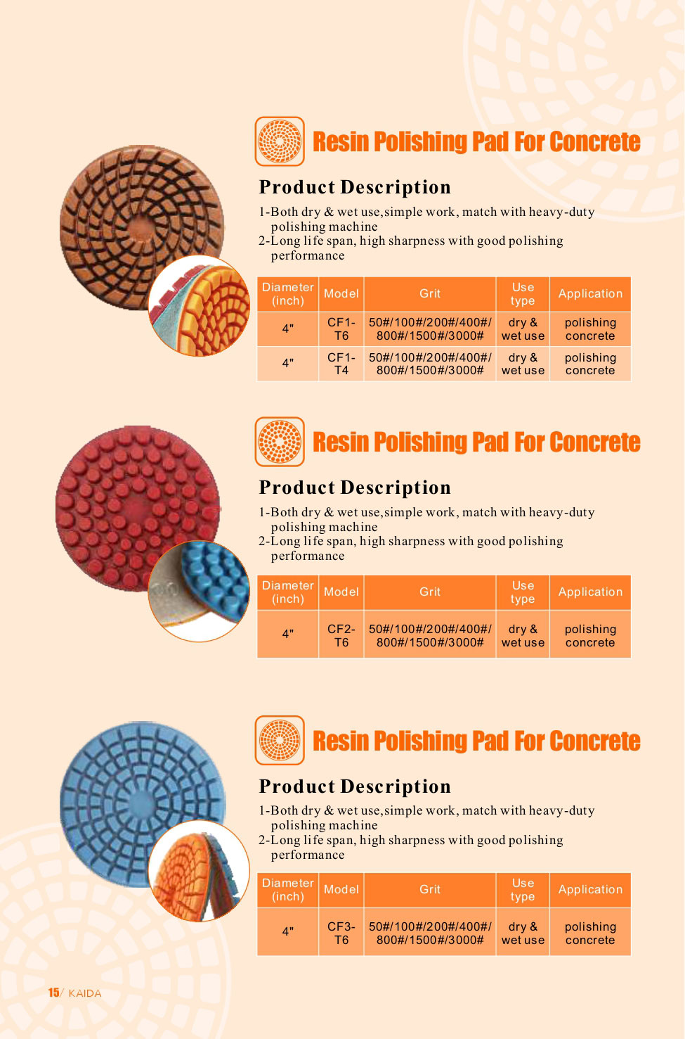 Diamond wet polishing pads are used on handheld polisher or portable grinder,